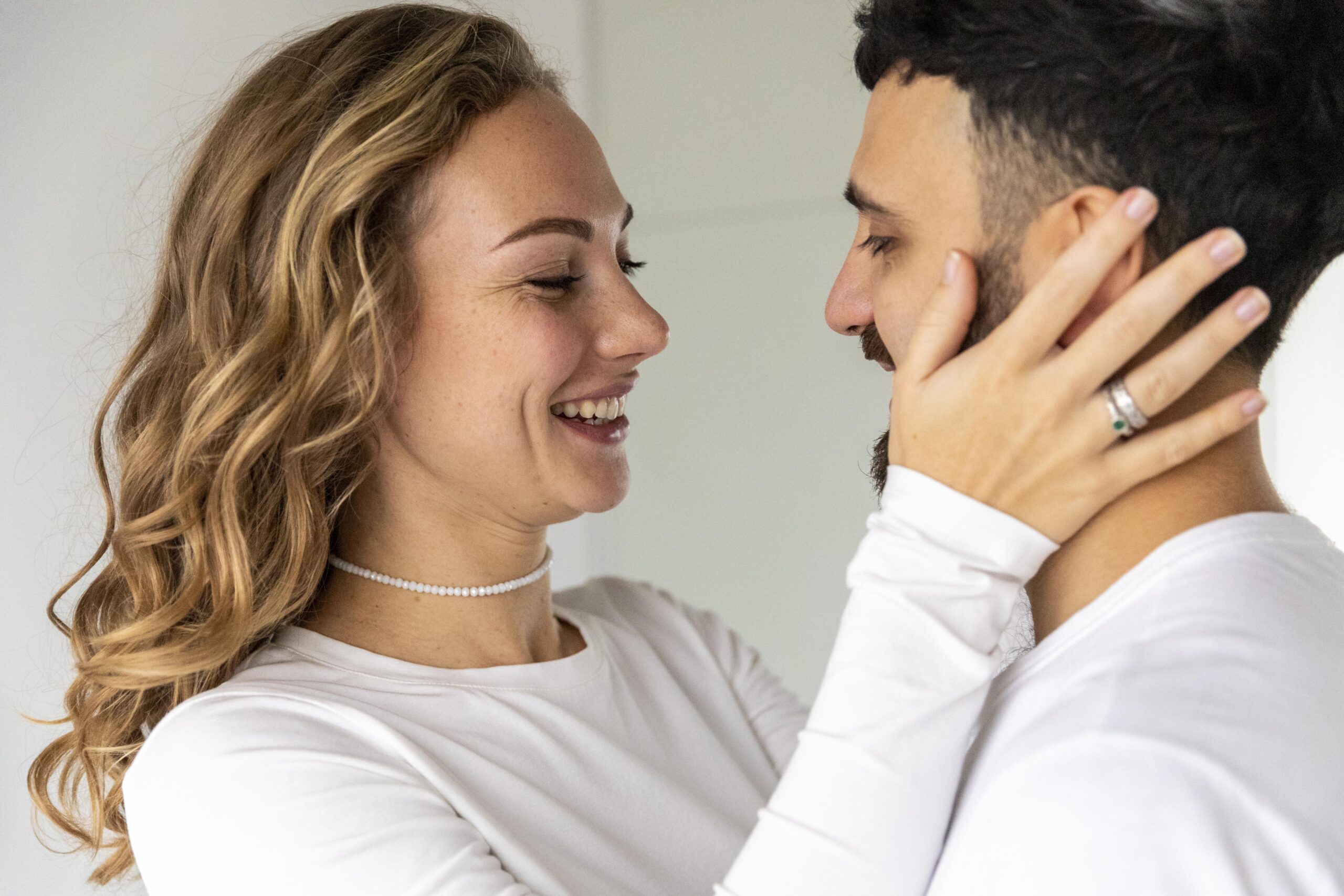 A smiling couple holding each other, symbolizing the peace, healing, and joy that come from Christ-centered forgiveness in relationships.